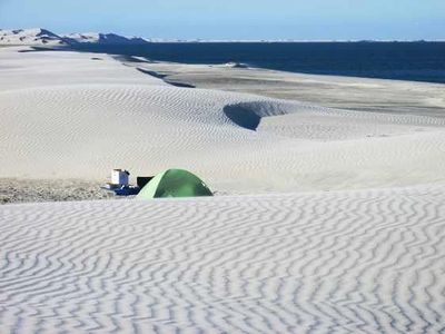 The snow-white, talcum-powdery-soft dunes were still there, making for tiring walking. The wind was still relentless. Camping in the protection of the dunes might seem like a good idea… till sheets of fine sand begin covering tent floors, sleeping bags, pots and plates and anything else left exposed. I took three Canon point-and-shoot cameras out with me. Only one survived the insidious assault of the blowing sand.